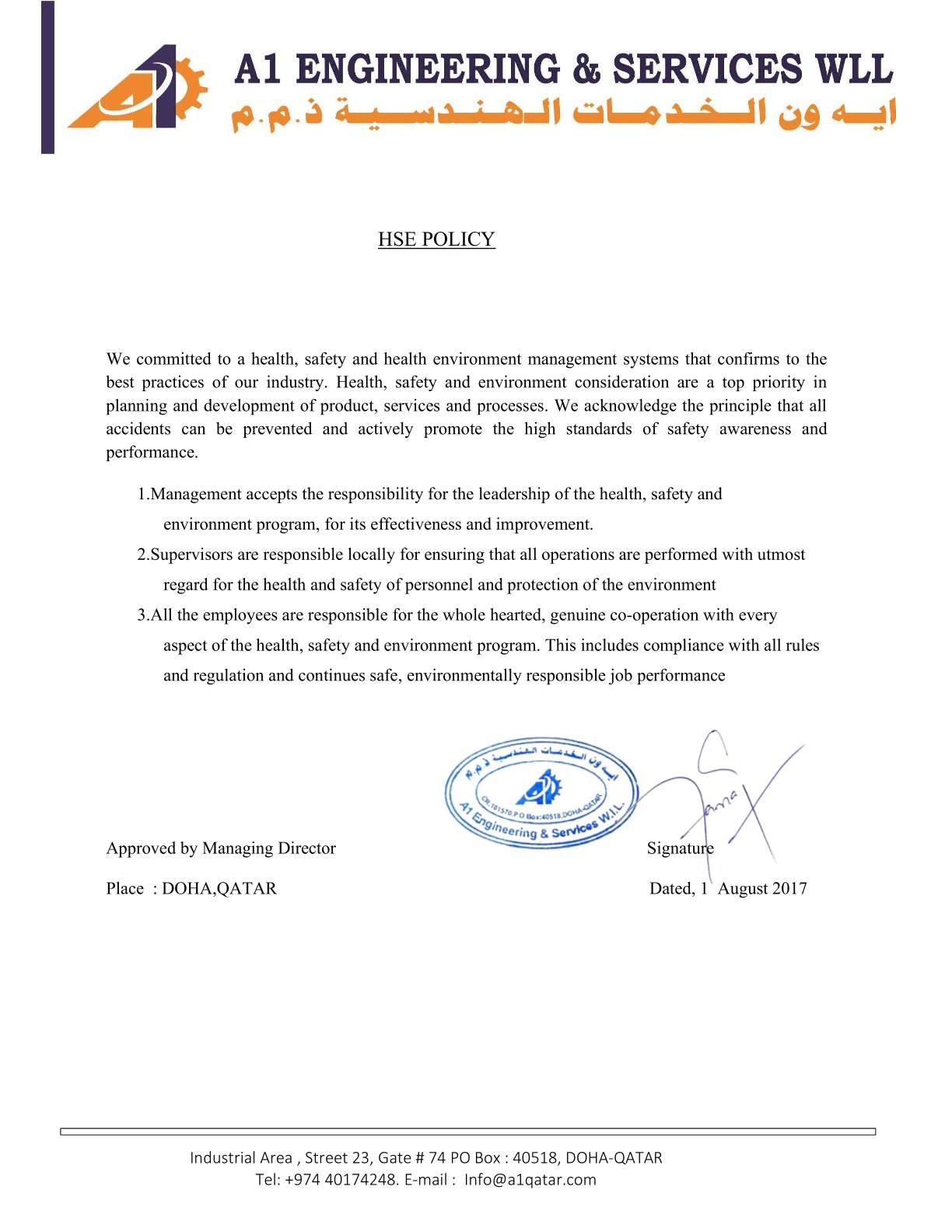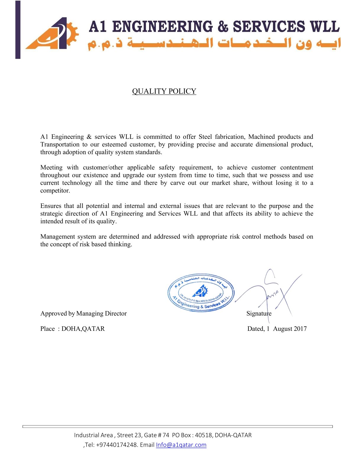 Welcome to A1 Engineering & Services W.L.L.